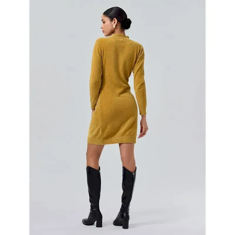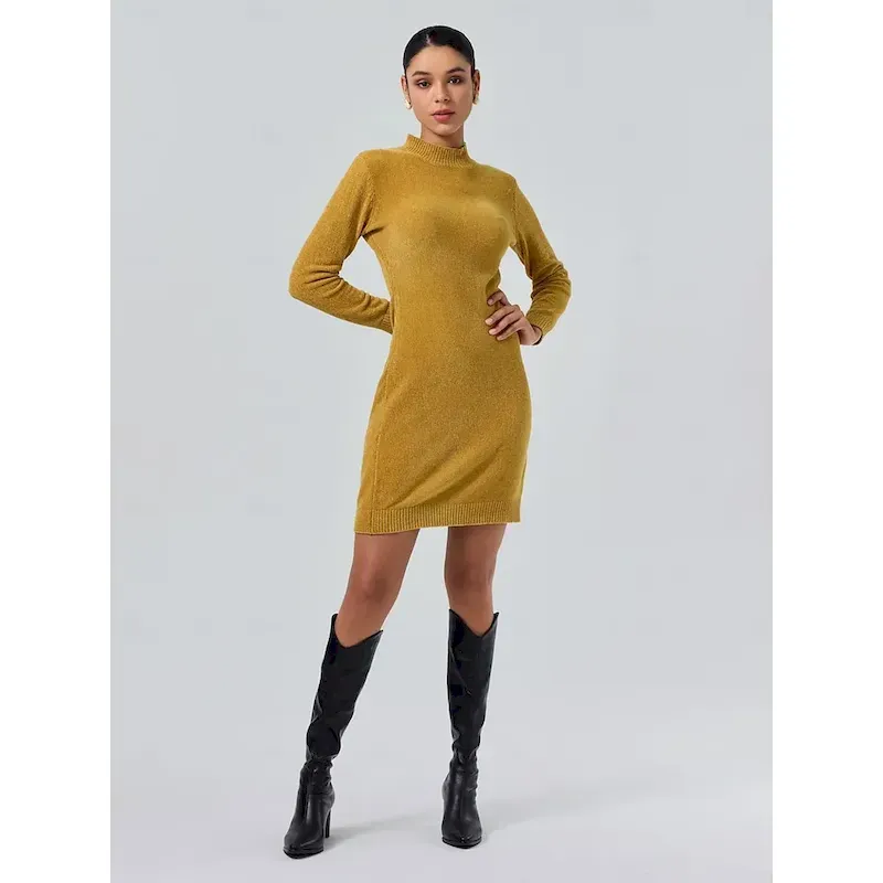 1.Dresses Type: Casual Dress Knit Dress Sweater Dress2.Gender: Women’s3.Style: Casual4.Neckline: High Neck5.Sleeve Length: Long Sleeve6.Pattern: Solid Color