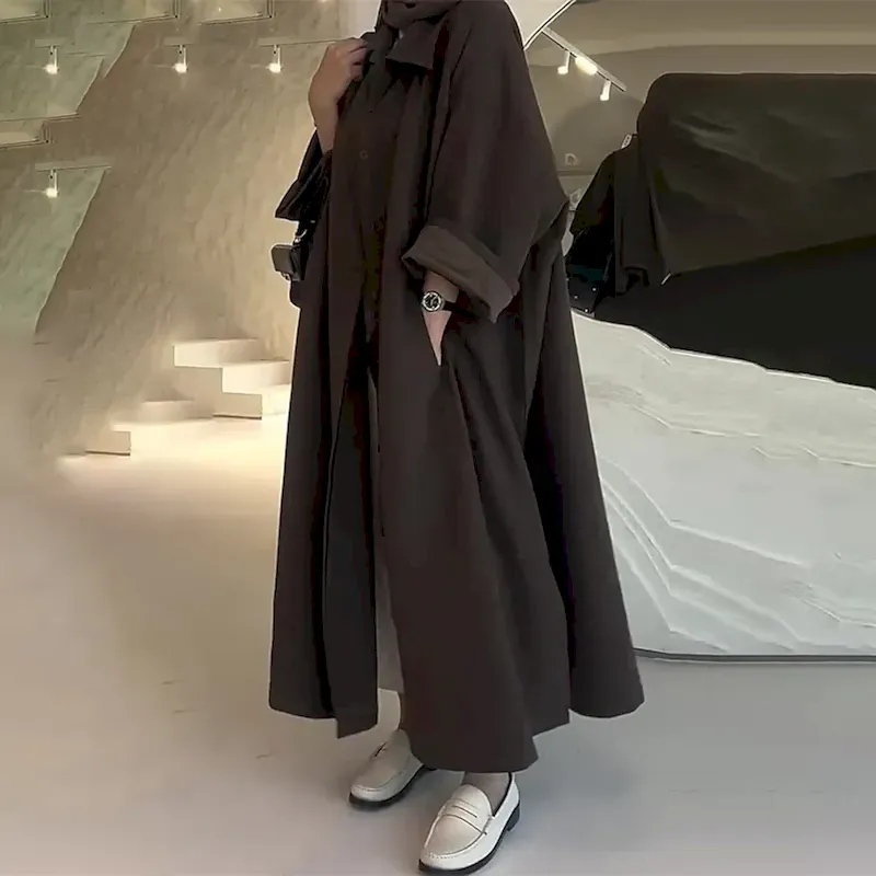 Women’s Coat Warm Comfortable Buttons Pocket Fashion Sweet Plain Street Daily Casual Daily Weekend Single Breasted Long Turndown Regular Fit Long Sleeve Outerwear Coffee Fall Winter