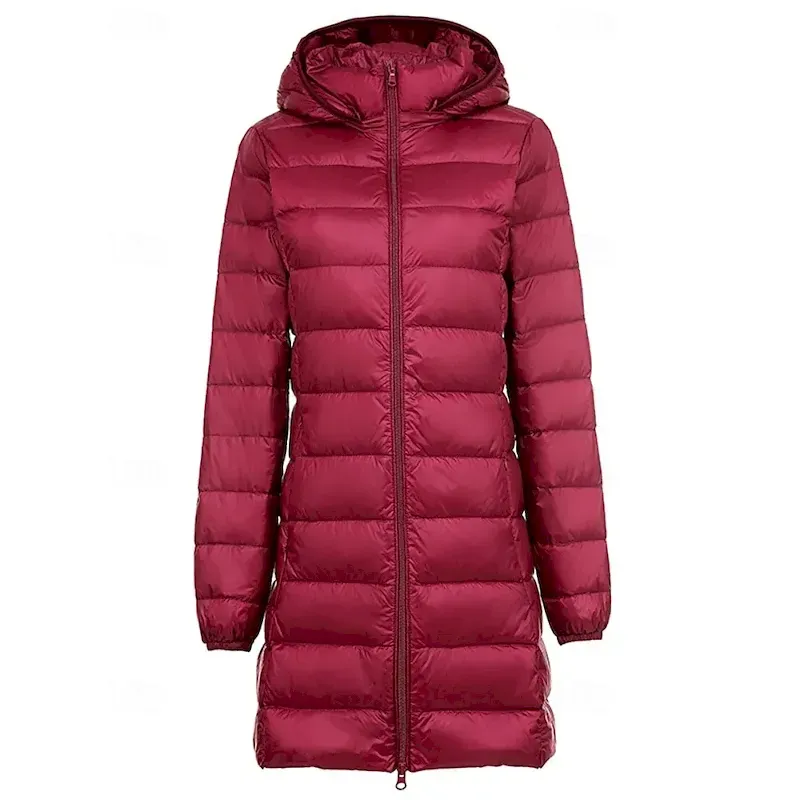 Women’s Down Jacket Coat Warm Comfortable Zipper Pocket Fashion Plain Holiday Casual Daily Weekend Zipper Long Hooded Regular Fit Long Sleeve Outerwear Navy Wine Blue Fall Winter