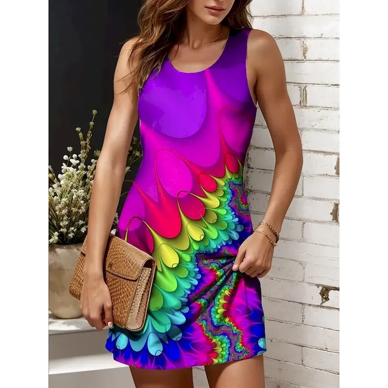 1.Design: Print2.Neckline: U Neck3.Dress Length: Mini